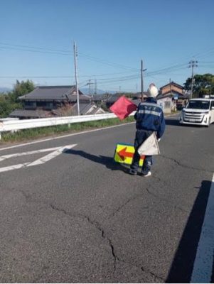 「〇月〇日〜〇日、〇時〜〇時で片側交互通行です。歩行者は緑のラインへご案内します。ご不便を最小にしますのでご協力をお願いします。」